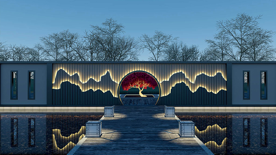 中国古建筑多种元素的灵活运用,营造东方花园的华贵印象。同时,现代感的几何线条穿插于文华之间,彰显出鲜明的时代气息。