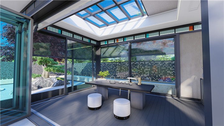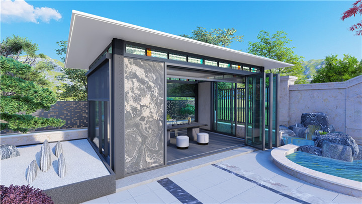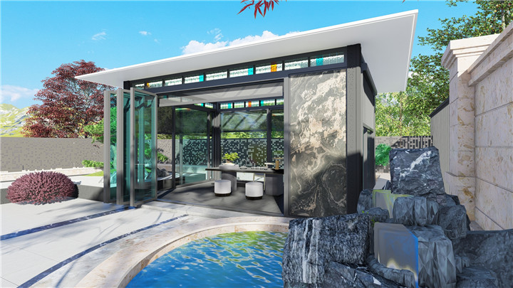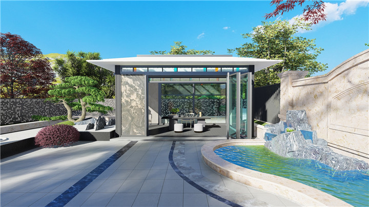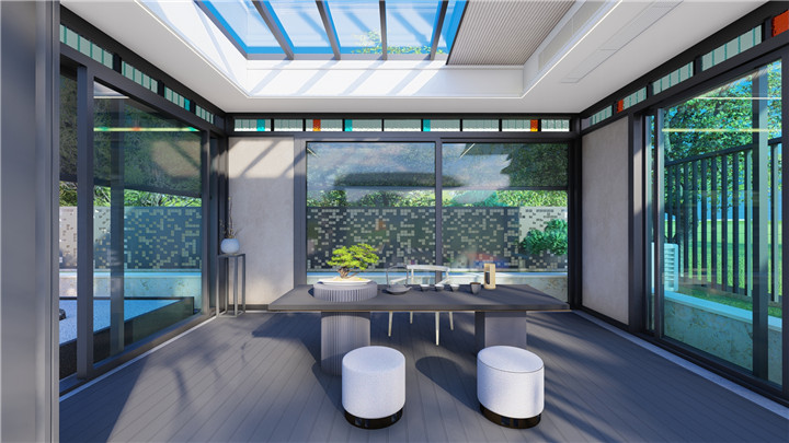 中国古建筑多种元素的灵活运用,营造东方花园的华贵印象。同时,现代感的几何线条穿插于文华之间,彰显出鲜明
