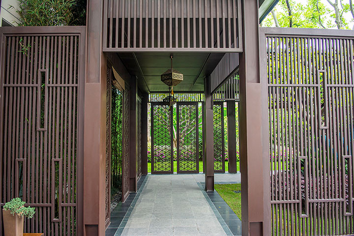 中国古建筑多种元素的灵活运用,营造东方花园的华贵印象。同时,现代感的几何线条穿插于文华之间,彰显出鲜明的时代气息。