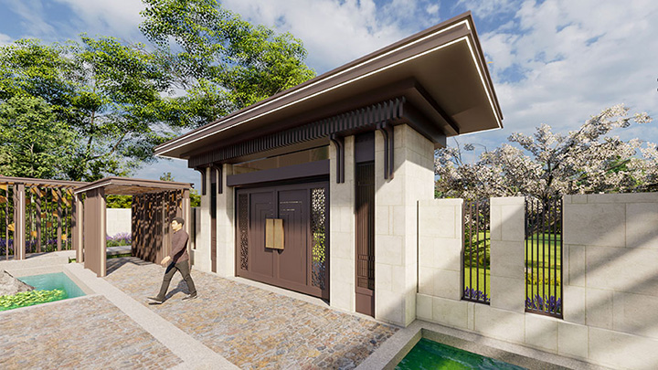 中国古建筑多种元素的灵活运用,营造东方花园的华贵印象。同时,现代感的几何线条穿插于文华之间,彰显出鲜明的时代气息。
