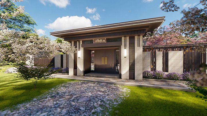 中国古建筑多种元素的灵活运用,营造东方花园的华贵印象。同时,现代感的几何线条穿插于文华之间,彰显出鲜明的时代气息。