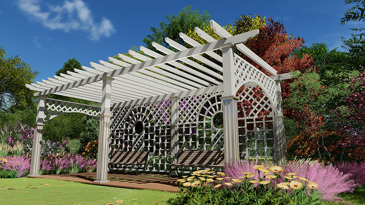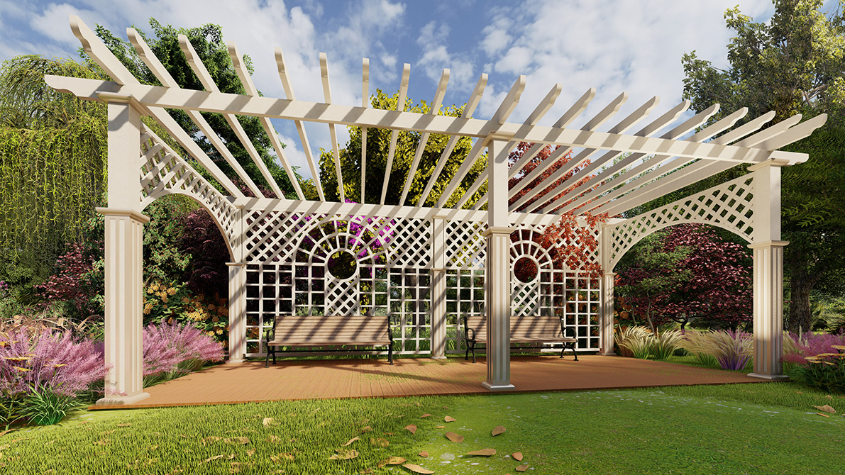 中国古建筑多种元素的灵活运用,营造东方花园的华贵印象。同时,现代感的几何线条穿插于文华之间,彰显出鲜明的时代气息。