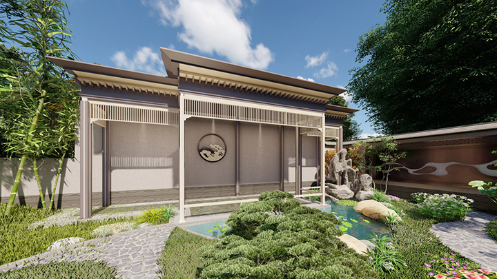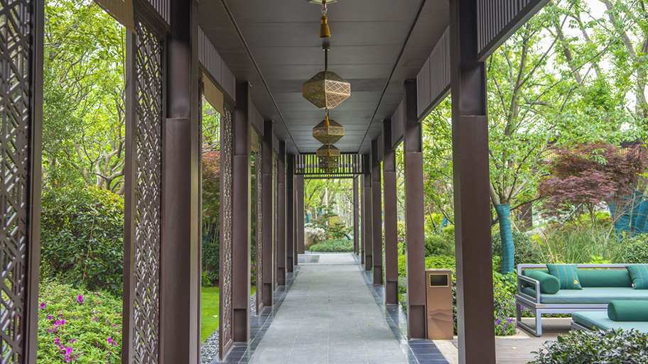 中国古建筑多种元素的灵活运用,营造东方花园的华贵印象。同时,现代感的几何线条穿插于文华之间,彰显出鲜明的时代气息。