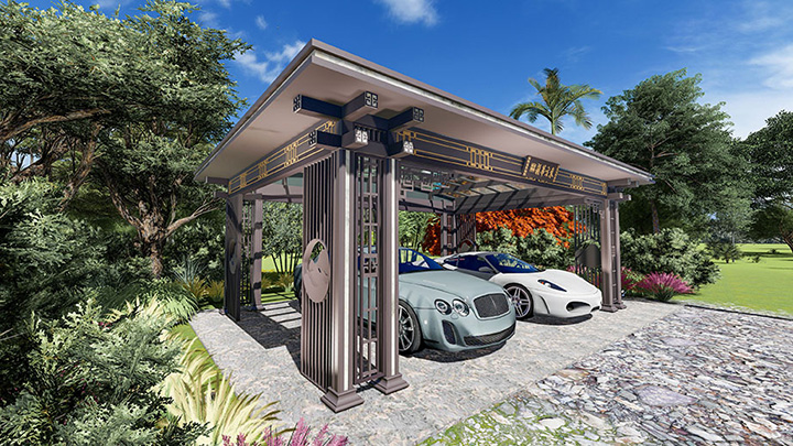 中国古建筑多种元素的灵活运用,营造东方花园的华贵印象。同时,现代感的几何线条穿插于文华之间,彰显出鲜明的时代气息。