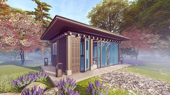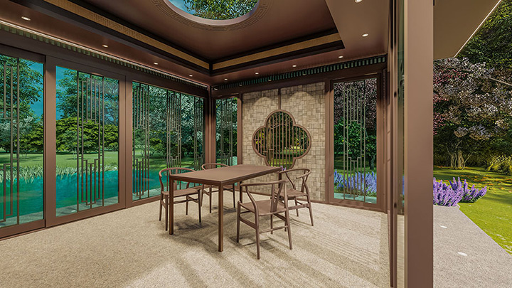 任凭时光流转只为留下万古流芳的艺术质感风憬花园时光灵影凉亭室内外的光影交错打造不同的视觉与感官体验它骨子里的东方文华气息与东方人的高雅品位完美契合是塑造东方雅院的大美之选古雅华庭