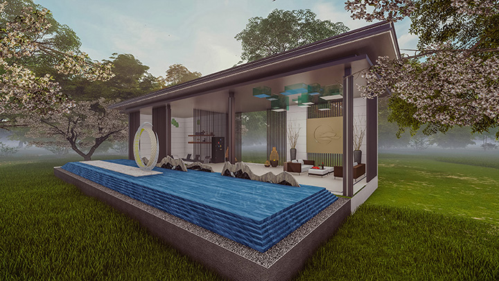 中国古建筑多种元素的灵活运用,营造东方花园的华贵印象。同时,现代感的几何线条穿插于文华之间,彰显出鲜明的时代气息。